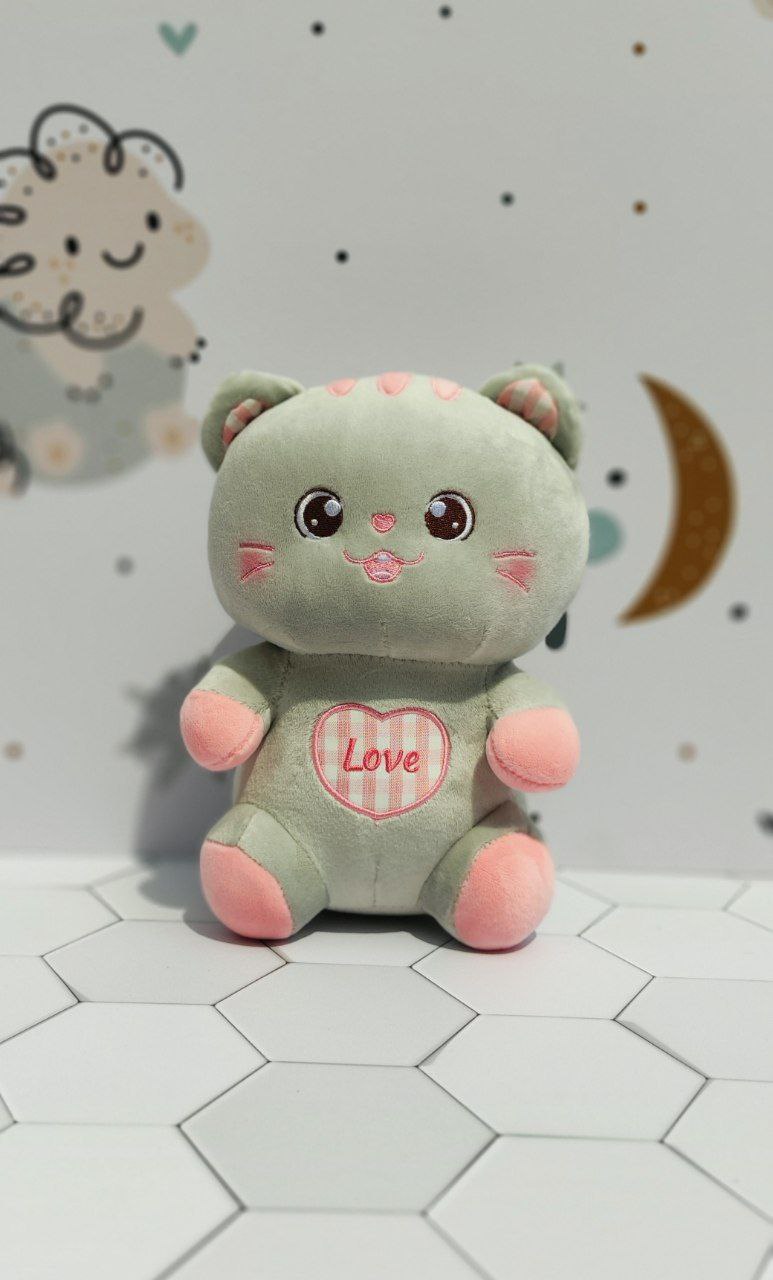 عروسک گربه طوسی سفید پاپنجه صورتی
